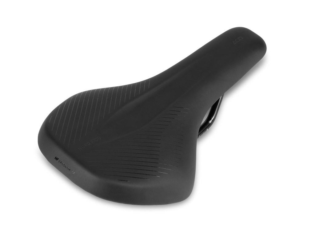 Dobré sedlo je dôležité, pretože bezbolestné sedenie má mimoriadny vplyv na radosť detí z jazdy na bicykli. Naše sedlo NF Ergonomics NURO Kids má tvar písmena T pre väčší priestor pre nohy a špeciálny ergo-reliéfny kanál na minimalizáciu tlaku, aby sa dosiahol čo najlepší komfort pri šliapaní.