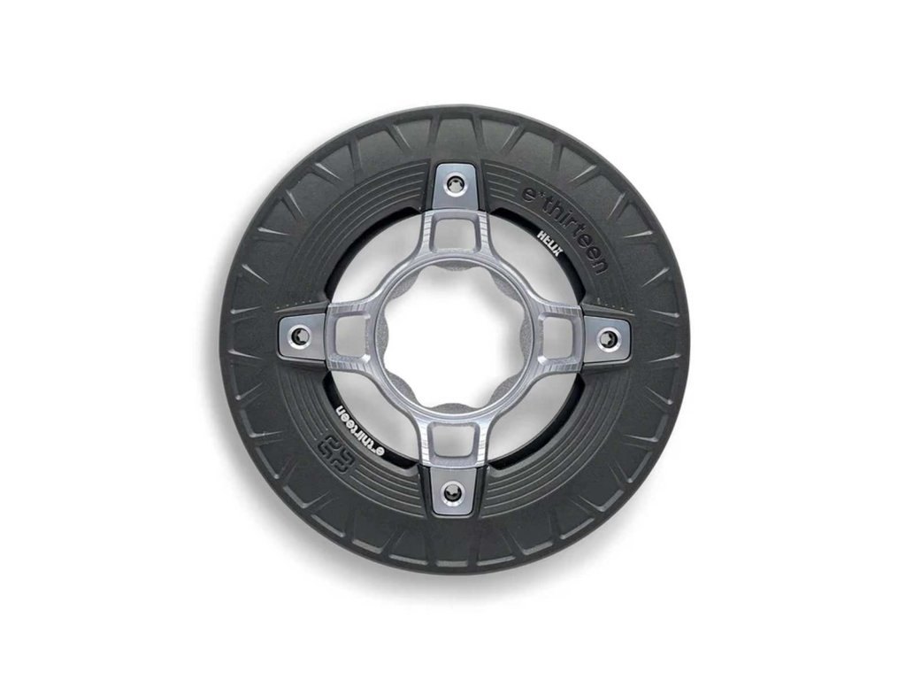 Motorové systémy TQ® HPR50, Fazua® Ride 60, Bosch® SX a Avinox® nechávajú ozubené koliesko a reťaz vystavené nárazom na bicykle, ktoré sú nevyhnutne ťažšie ako ich iní bratia, no nemajú štandardné držiaky ISCG. Turbocharger e*thirteen e*spec integruje robustný, ľahký, kompozitný Bashguard s 104 BCD Spider a Helix 104 BCD Chainringom. V spojení s elegantným horným vodítkom Turbocharger je štandardom špičkové zadržiavanie reťaze.