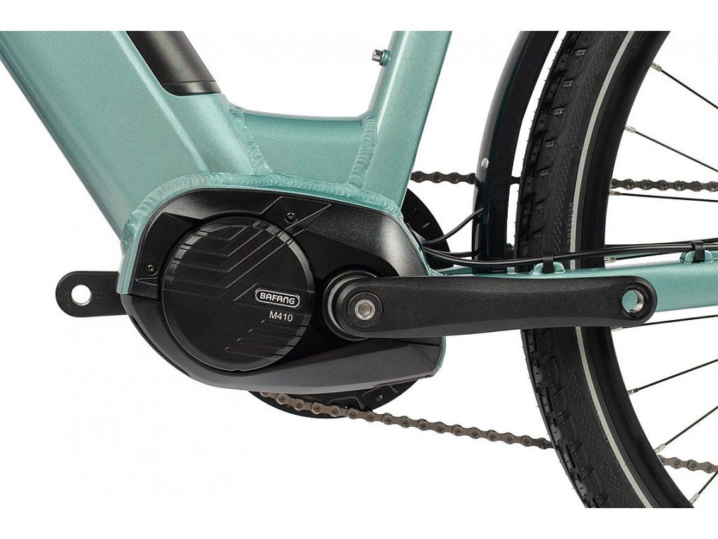 Motor Bafang M410 s krútiacim momentom 90 Nm poskytuje plynulú a dostatočne silnú podporu pri rozjazdoch, jazde do kopca aj proti vetru. V spojení s batériou s kapacitou 630 Wh (17,5 Ah) s článkami Samsung ponúka dostatočný dojazd pre každodenné dochádzanie aj víkendové vychádzky. Veľký farebný displej zaisťuje prehľadné ovládanie a jednoduchú orientáciu počas jazdy.