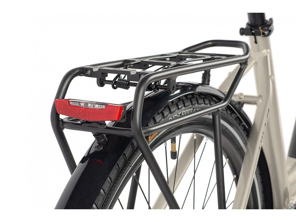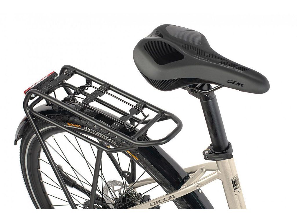 Model Villa prešiel výraznými inováciami v oblasti výbavy. Odolnejšie blatníky lepšie chránia pred nečistotami, predné aj zadné svetlo napájané priamo z batérie elektrobicykla zvyšujú bezpečnosť bez nutnosti dobíjania. Zadný nosič s konzolou MIK umožňuje rýchle uchytenie tašiek, košíkov alebo iného príslušenstva, zatiaľ čo stabilný stojan uľahčuje parkovanie.