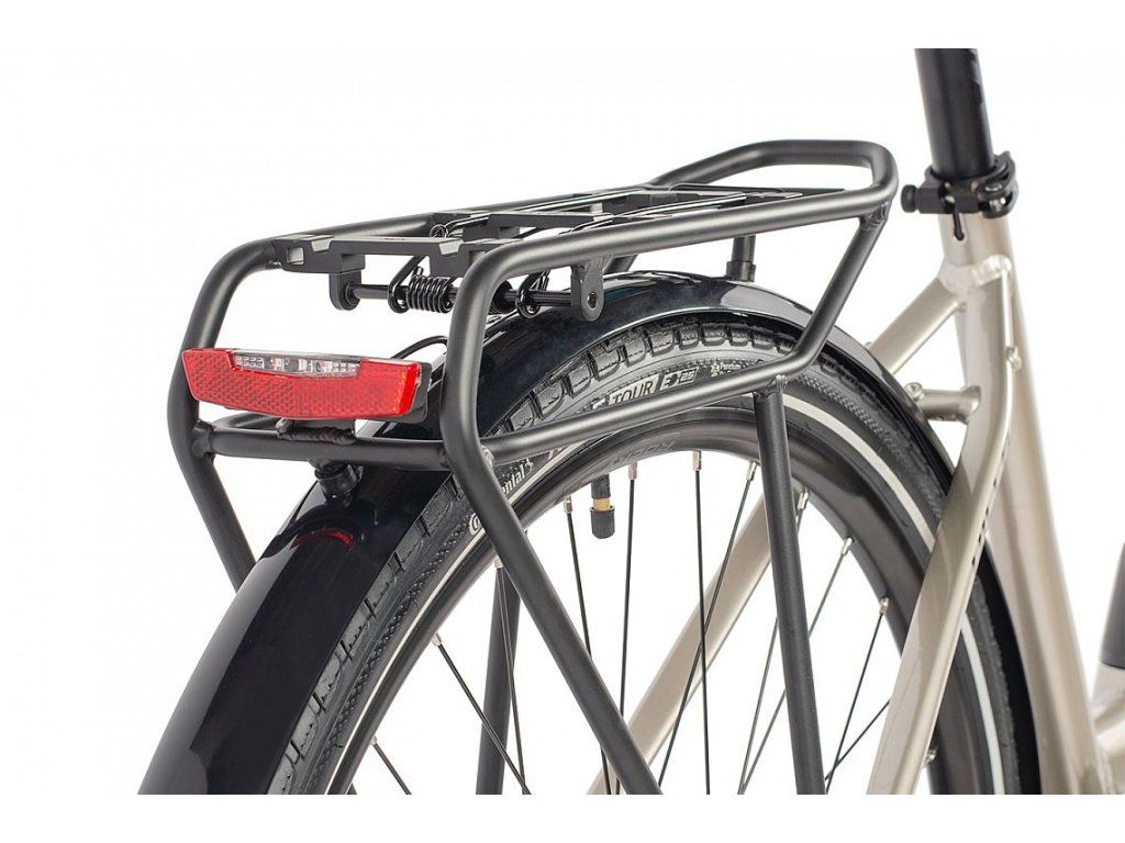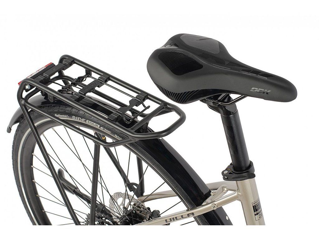 Model Villa prešiel výraznými inováciami v oblasti výbavy. Odolnejšie blatníky lepšie chránia pred nečistotami, predné aj zadné svetlo napájané priamo z batérie elektrobicykla zvyšujú bezpečnosť bez nutnosti dobíjania. Zadný nosič s konzolou MIK umožňuje rýchle uchytenie tašiek, košíkov alebo iného príslušenstva, zatiaľ čo stabilný stojan uľahčuje parkovanie.