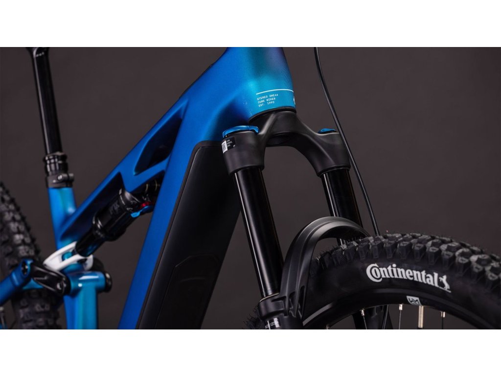 Stereo Hybrid ONE44 HPC má rám prepracovaný do posledného detailu – presne tak, ako sa na poriadny trailový e-bike patrí. Hlavový uhol si môžeš doladiť vďaka nastaviteľnému hlavovému zloženiu, uhladený dizajn podčiarkuje vnútorné vedenie káblov, a čistotu pohonu zabezpečuje praktický chránič reťaze. Ovládač Bosch je decentne zabudovaný v hornej rúrke, a s displejom Purion 400 máš všetko dôležité stále na očiach. Karbónový predný trojuholník v kombinácii s 150mm vidlicou a 140mm zadným zdvihom je pripravený zjesť aj najdrsnejšie traily. Nechýba ani UDH pätka a široká ponuka veľkostí vďaka systému Size Split.
