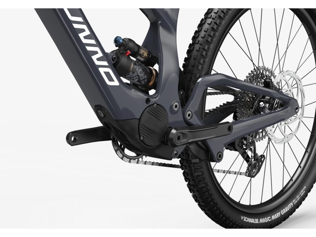- Rám: UNNO Mith Carbon fibre monocoque with 160mm of rear travel. Virtual pivot suspension system. Integrated display, battery, chain guide and seat tube clamp. Motor protector. EnduroMAX Bearings. Internal cable routing. Boost thru axle 12x148. Post Mount brake system. Max tire width: 2.6”. Recommended SAG: 30-35%.