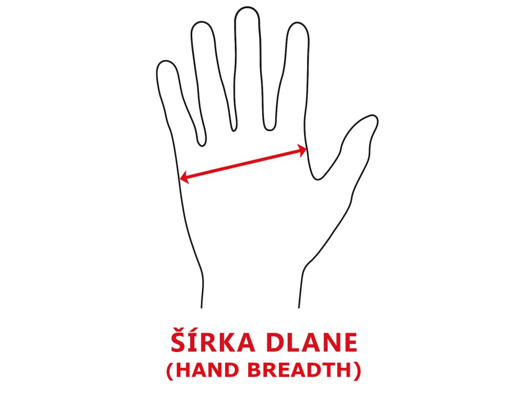 - Pre šírku dlane (viď obrázok): - Standard 51 - 69 mm