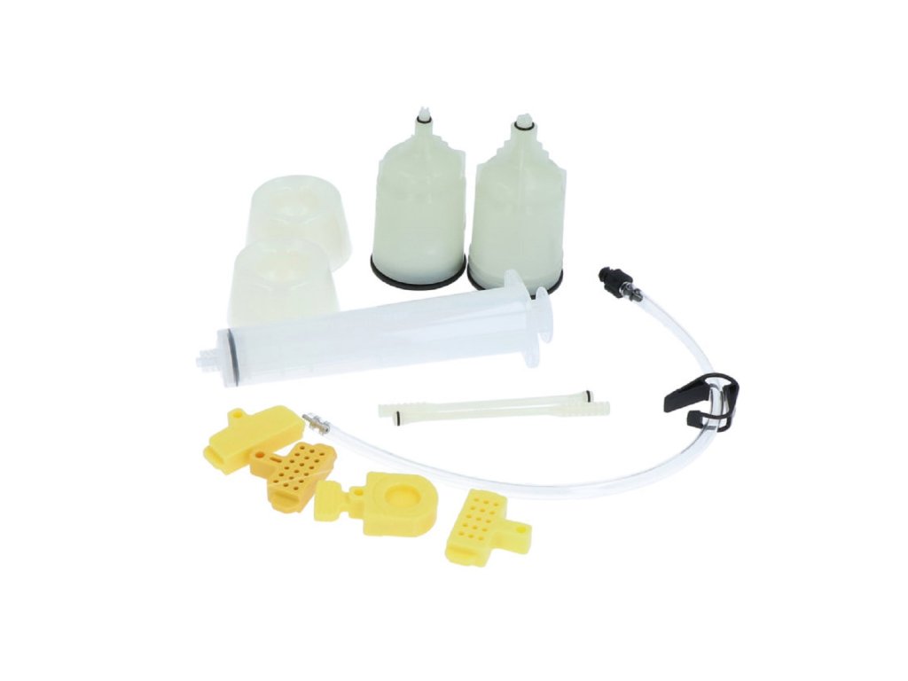 Odvzdušňovacia sada obsahuje 2ks lievik pre ST/BL, striekačku a 4ks distančných vložiek pre rôzne druhy brzdových strmeňov.